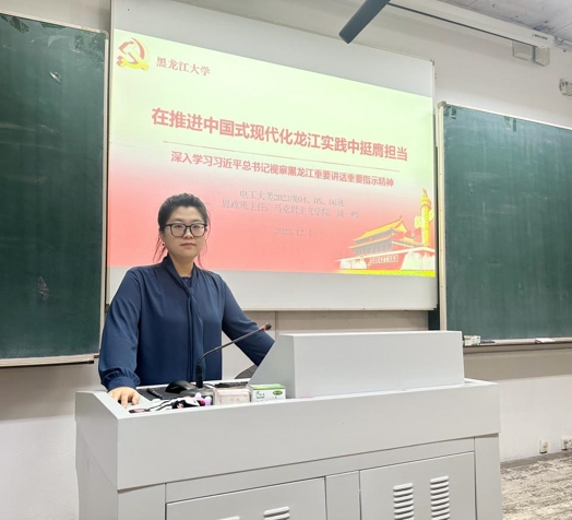 中国·yl23411(永利)集团官网结合青年教师担任思政班主任实际,扎实推动理论宣讲进基层工作,近期,中国近现代史纲要教研部教师刘一鸣在其担任思政课班主任的23级电工大类13班、14班、15班开展“挺膺担当新时代筑梦龙江全面振兴——深入学习习近平总书记视察黑龙江重要讲话重要指示精神”的主题宣讲。