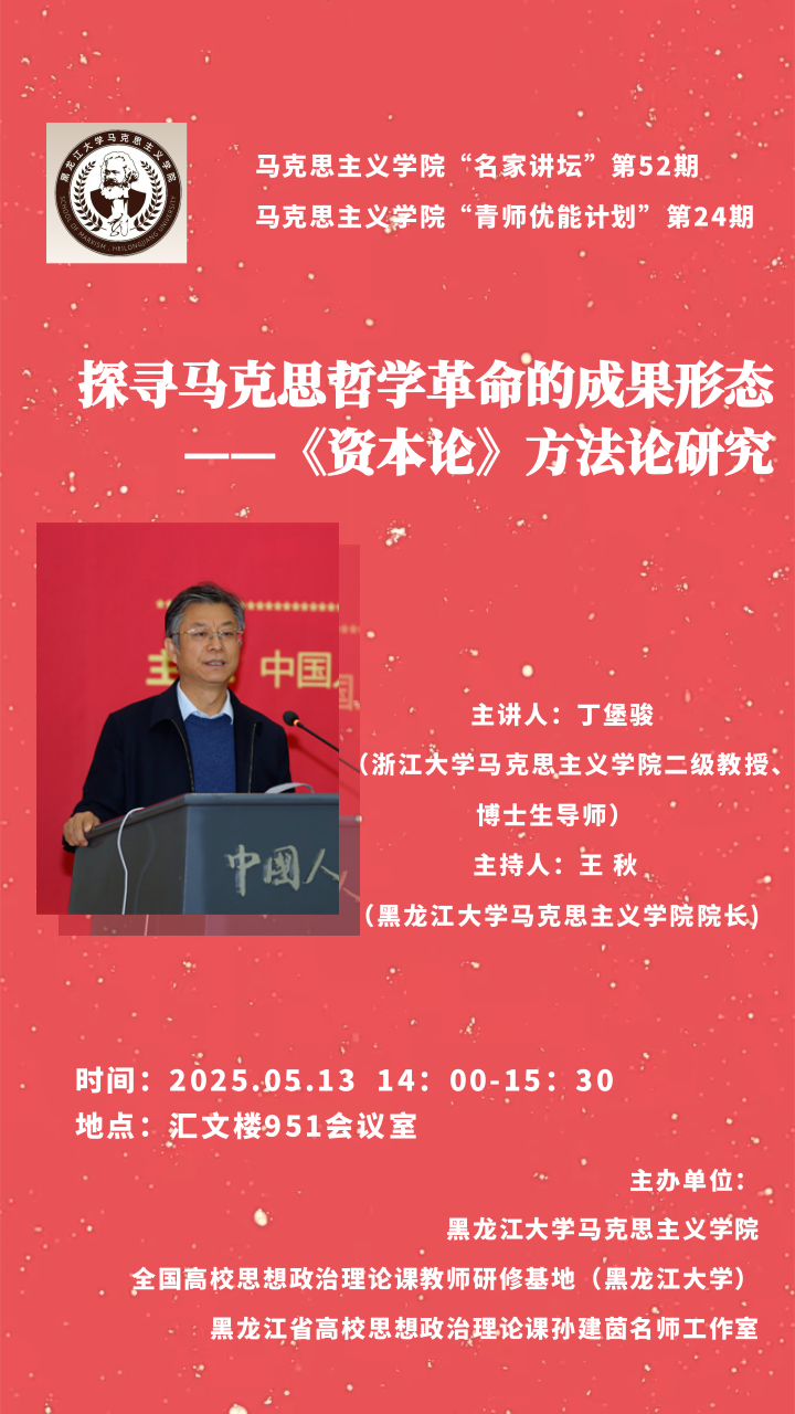 中国·yl23411(永利)集团官网“探寻马克思哲学革命的成果形态——《资本论》方法论研究”讲座预告