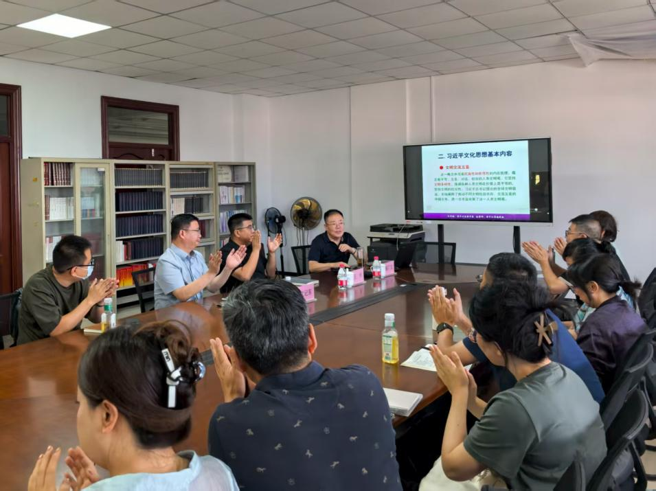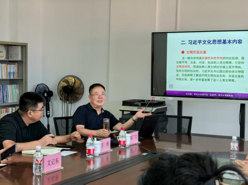 邹广文教授详细阐述了“两个结合”的重要思想,即把马克思主义基本原理同中国具体实际相结合、同中华优秀传统文化相结合。他强调,这一思想是习近平文化思想成熟的重要标志,明确回答了新时代中国特色社会主义文化建设的根本问题,是推动中华文明实现现代转型的必然要求。此外,邹教授还就如何在新时代背景下继续推动文化繁荣、建设文化强国、建设中华民族现代文明提出独到见解。