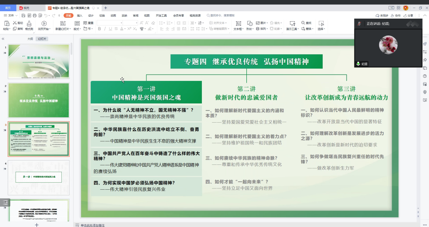 纪逗教授介绍了本章的教学目标、教学重点、难点和教学方法。根据教学内容的逻辑结构,纪逗教授以设问的形式带领大家进一步厘清了本专题必须要讲清的重点、难点,通过丰富生动的案例推出一个个知识点,将书本理论知识呈现得通俗易懂,最后再将理论“落”到员工的生活实际中。她强调,讲好中国精神,一定要讲好中国故事,要把中国故事贯穿于中国精神的这一章节当中,更要给员工讲清楚中国精神的整体内涵以及如何去做新时代的爱国者和改革创新者。