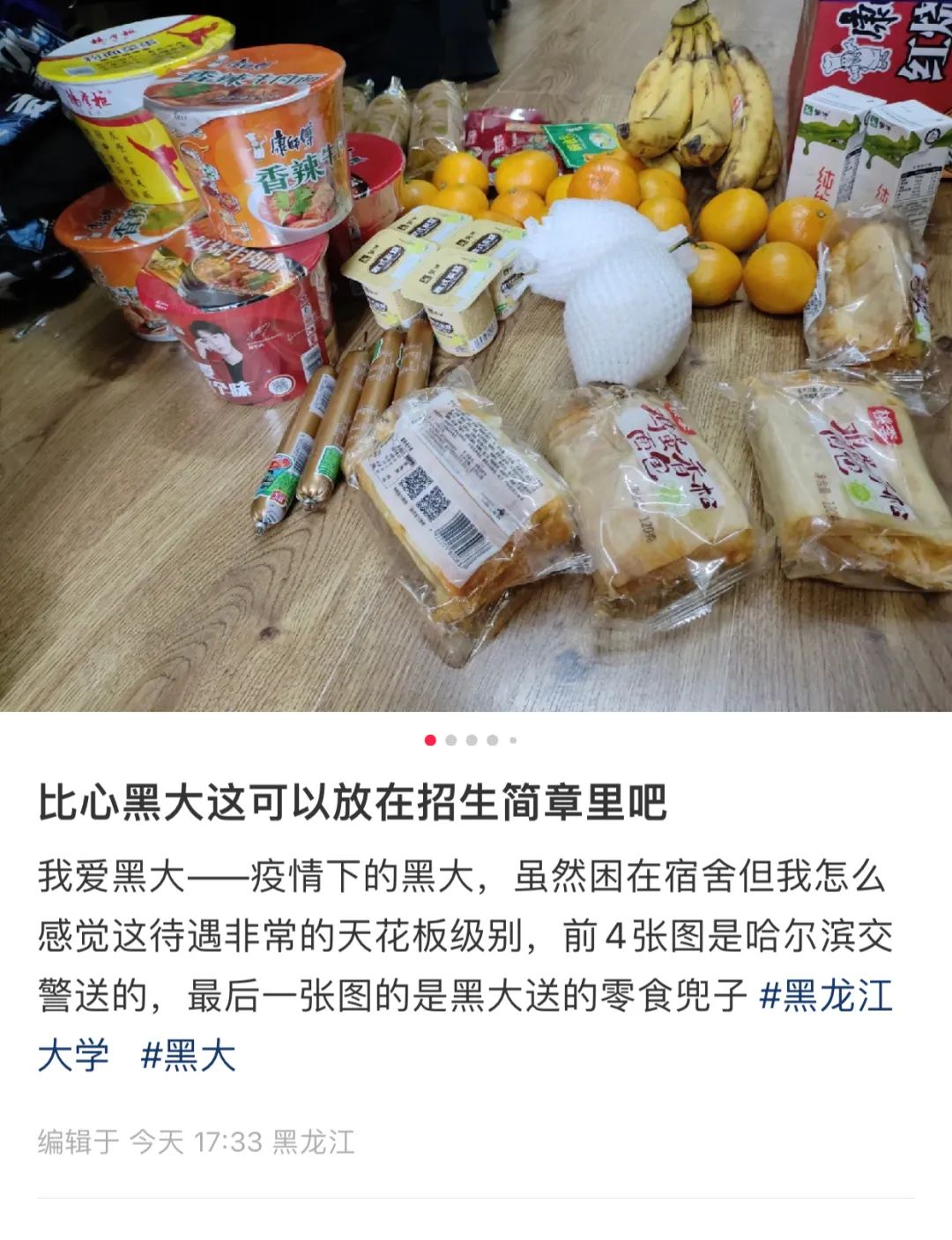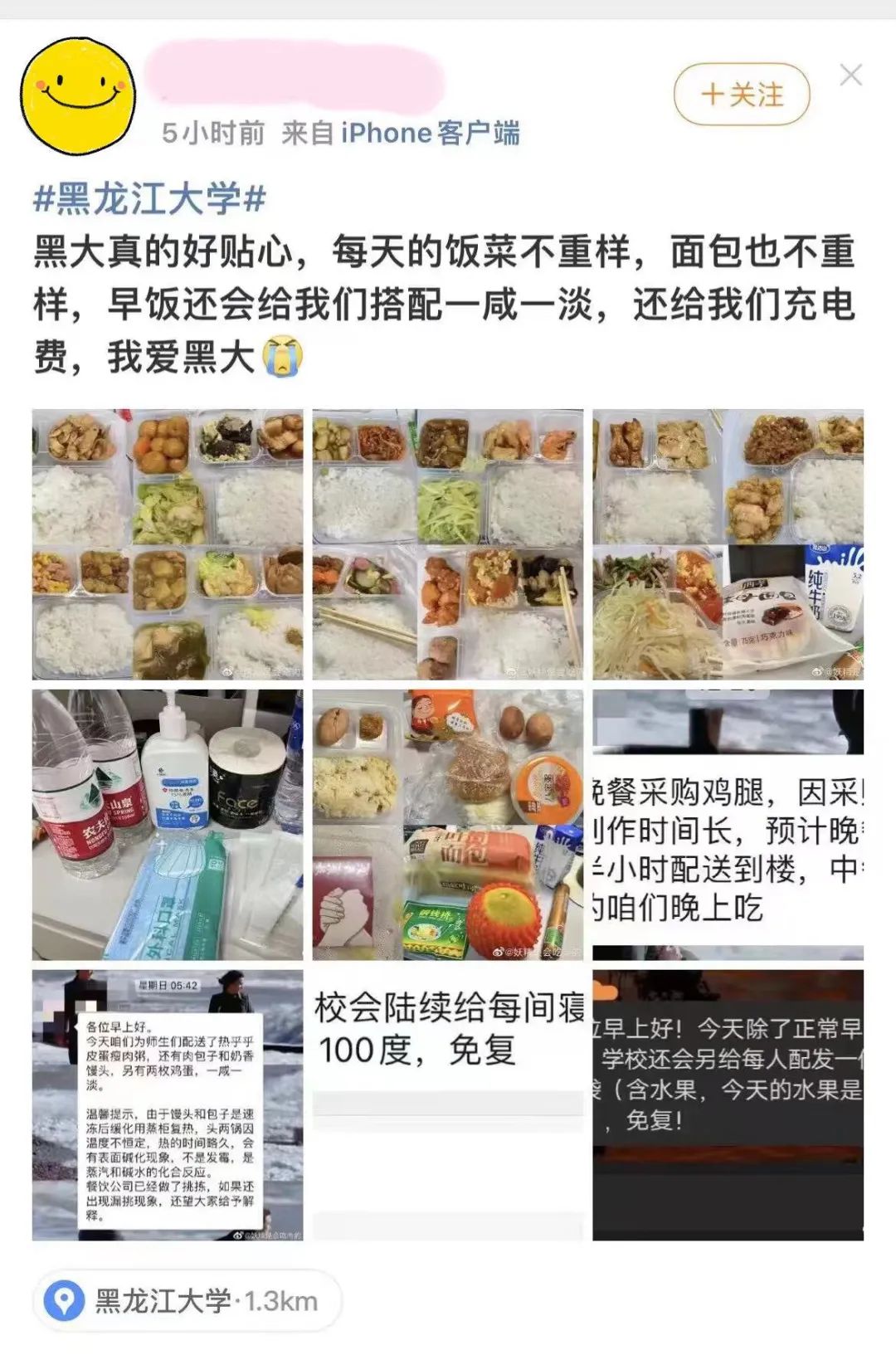 公司始终关注员工们的身心健康。中共党史专业的硕士研究生刘同学说:“回想刚接到通知的时候心里有些许慌乱,但是封寝消息公布的那一刻,我们党史专业群里面三位任课老师第一时间给我们发来了信息,不断地安抚我们的情绪、关心我们的生活保障和身心健康。随后在这几天的时间里,我真正见识到了什么是黑大速度,任何信息都是第一时间公布、后勤保障很充足。每天的饭不仅是免费的还都是热乎的,每天都会给我们送新鲜的水果以及零食。”国外马克思主义研究专业硕士研究生白同学在隔离期间和室友一同报名参加了所在楼层的志愿工作。他说:“在志愿服务期间,我们在为同学们的每一声谢谢感到高兴的同时,也感受到了医护人员和老师们的辛苦。我相信在大家的共同努力下,我们一定会渡过难关,战胜疫情。”中共党史专业的硕士研究生范同学也表示:“真的很感谢‘大白’和志愿者们,看见宿舍电梯口支着的一张行军床,我才深深体会到志愿者们为了防疫真的做出了很多牺牲!在这次抗疫过程中,我也深刻感受到了黑大的人文关怀。老师们在封寝的第一时间联系我们,时刻关心我们的情绪,还给我们推荐了一些在宿舍可以做的体育锻炼视频,鼓励我们增强身体素质,调节情绪。雾霭消逝,霁云终临,没有一个冬天不会逾越,没有一个春天不会来临!黑大加油!”来自同学们的理解与支持,就是我们战“疫”路上最大的动力!