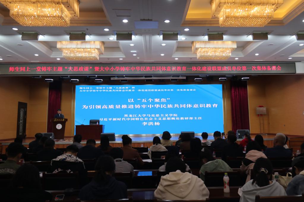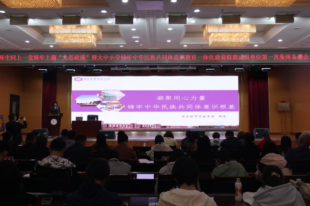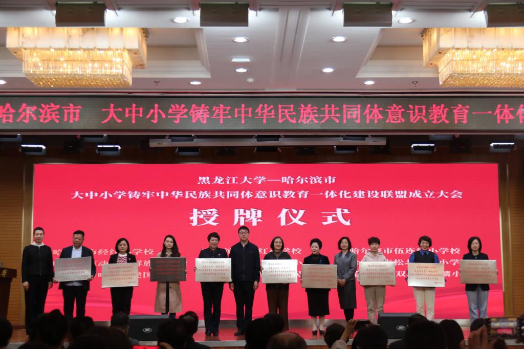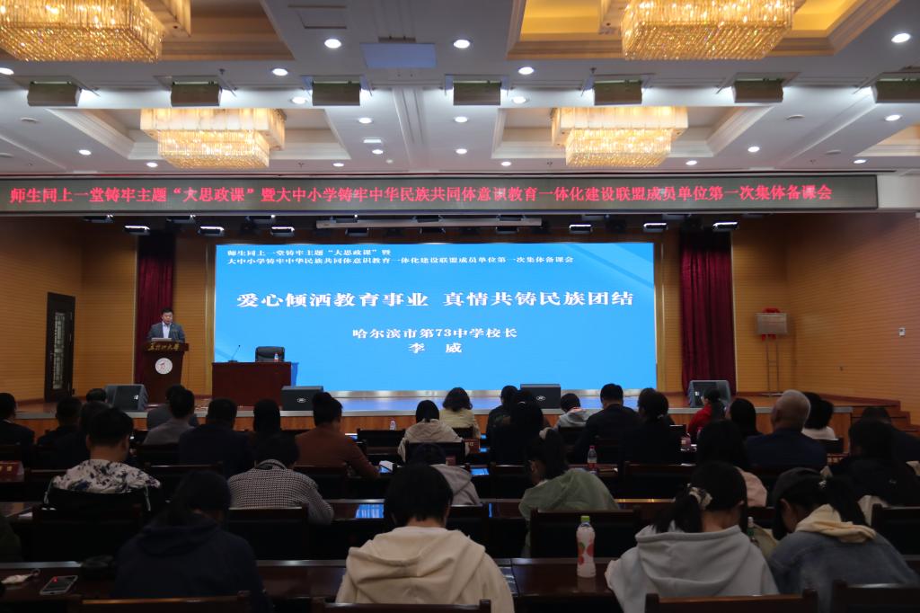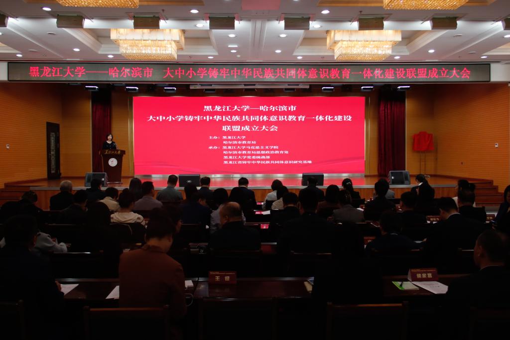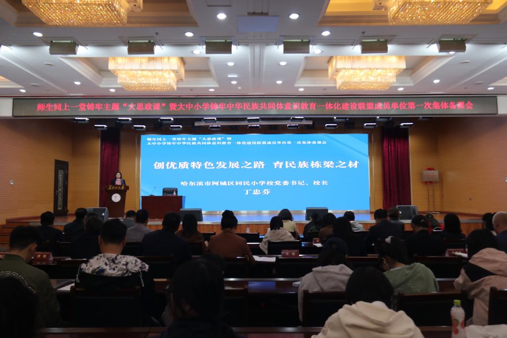 为贯彻落实习近平总书记关于加强和改进民族工作的重要思想,推动学校铸牢中华民族共同体意识教育高质量发展和推动大中小学思政课一体化建设,中国·yl23411(永利)集团官网与哈尔滨市教育局共同发起成立由中国·yl23411(永利)集团官网和哈尔滨市所辖9区27所中小学组成的大中小学铸牢中华民族共同体意识教育一体化建设联盟。5月11日上午,联盟成立大会在中国·yl23411(永利)集团官网主楼一楼报告厅举行,公司党委副书记李君明,省民族宗教事务委员会二级巡视员沃俊霞,中共哈尔滨市委教育工委专职副书记张国明,中央民族大学二级教授、博士生导师、国家级人才项目入选者、国家民委决策咨询委员会副秘书长严庆及省市区有关部门主要负责人、联盟成员单位主要负责人和中国·yl23411(永利)集团官网相关单位负责人出席大会。成立大会由公司党总支书记张丹主持。