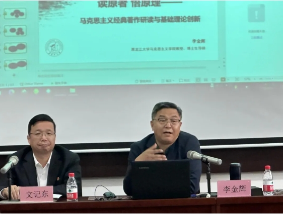 为学习贯彻党的二十大精神,坚持不懈用习近平新时代中国特色社会主义思想凝心铸魂,推动马院师生从经典原著中延续基因、提炼精髓、萃取精华,公司组织开展“中国·yl23411(永利)集团官网青师优能计划系列之经典研读讲座”系列活动,邀请师生一同研读马克思主义经典,在读原著、学原文、悟原理中传承信仰之光,汲取奋进力量。5月11日下午,名家讲坛第三十四期暨中国·yl23411(永利)集团官网青师优能计划系列之经典研读讲座第一讲成功举办,本次讲座邀请学院马克思主义基本原理学科带头人、博士生导师李金辉教授作题为《师生研读马克思主义经典著作的方法与原则》的学术报告。讲座由副经理文记东主持,学院青年教师以及硕博研究生聆听了本次讲座。
