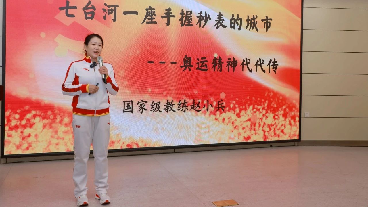 赵小兵从一部短片开场,讲述七台河这座人口不足70万的东北边陲小城如何在2022年北京冬奥会后再一次轰动了全国。随后,赵小兵分享了七台河短道速滑事业的开拓者和奠基人——孟庆余老师及自己如何接过孟老师手中的秒表,传承他的精神,并培养出像王濛这样的奥运冠军的艰辛历程。赵小兵表示,冠军精神不单单驻足于七台河,它已辐射到全省、甚至全国,而七台河冠军精神和黑大精神是一脉相承的。作为青年员工,要以梦想之笔拥抱希望,以奋斗之笔续写辉煌,携手传承奥运精神,为祖国建设与发展贡献力量。最后,赵小兵祝愿我国运动健儿在第九届哈尔滨亚冬会上再创佳绩!