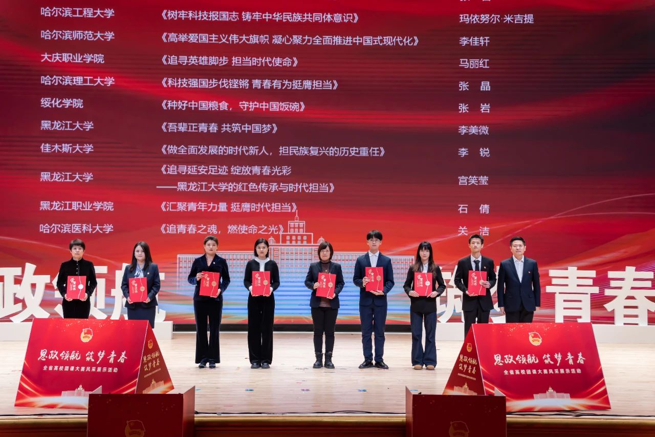 12月11日,由中共黑龙江省委教育工作委员会、共青团黑龙江省委员会主办的“思政领航筑梦青春”团课大赛风采展示活动在东北林业大学科学会堂举行。公司中国·yl23411(永利)集团官网教师李美微、宫笑莹分别荣获理论讲授类和实践教学类团课大赛省级一等奖。