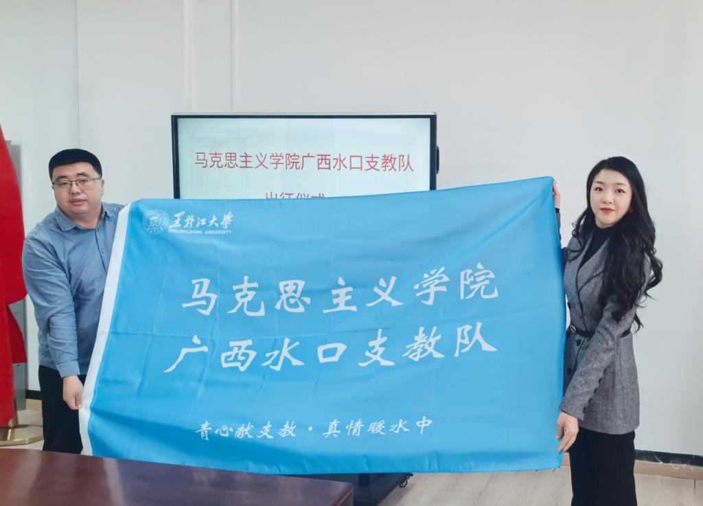 王秋寄语支教队成员。他对支教队成员无私奉献的精神给予高度评价,指出支教活动不仅是对广西地区的教育支援,同时也是对支教队员综合素质的整体提升,希望同学们能够在支教过程中善于学习,把自己所学的理论与支教实践相结合,增强创新意识与成果导向,共同擦亮黑大马院支教队的工作品牌。