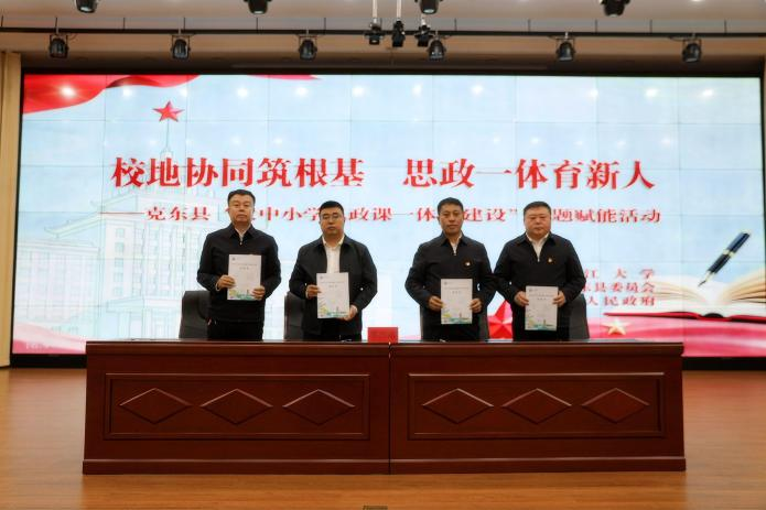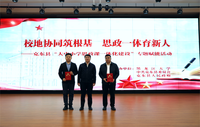 在签约仪式上,王秋与克东县第一中学、第二中学、实验小学共同签署了《大中小学思政课一体化建设合作协议》,双方将在思政课教学、团队队伍建设、教学资源开发等方面开展深度合作。克东县县长许晓飞为王秋、刘炳序颁发“克东县思政教育顾问”聘书。