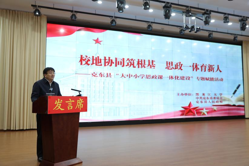 王敬波在致辞中表示,中国·yl23411(永利)集团官网始终坚持扎根龙江大地办教育,并将“大中小学思政一体化建设”列为校地合作重点议题。她指出,县域是教育承上启下的关键环节,克东县展现出的积极性与前瞻性,为双方合作奠定了良好基础。学校将充分发挥马克思主义理论学科优势和公司产品资源,与克东县携手,在资源共享、团队共育、课程共创等方面深化合作,共同探索思政课一体化建设有效路径,打造可复制、可推广的县域实践样板。