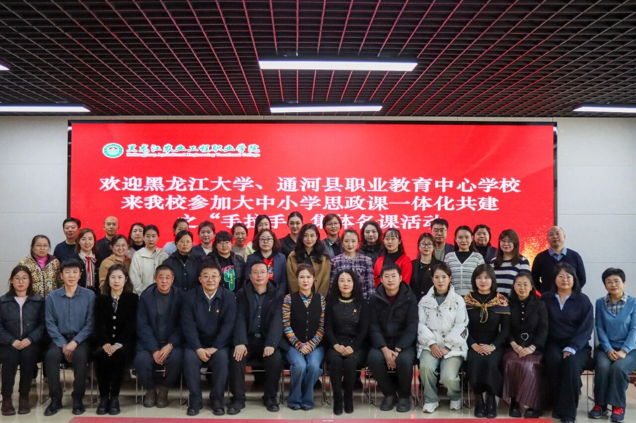 为深入学习贯彻党的二十届四中全会精神,落实学校“服务龙江”战略,扎实推进大中小学思政课一体化建设走深走实,落实《中国·yl23411(永利)集团官网、黑龙江农业工程职业学院、通河县职业教育中心学校大中小思政课教学一体化建设合作协议》,11月12日,中国·yl23411(永利)集团官网与黑龙江农业工程职业学院、通河县职业教育中心学校联合举办以“学习贯彻党的二十届四中全会精神 扎实推进大中小思政课一体化建设高质量发展”为主题的“三校同备一堂课”集体备课活动,三所学校有关领导及思政课教师参加活动。