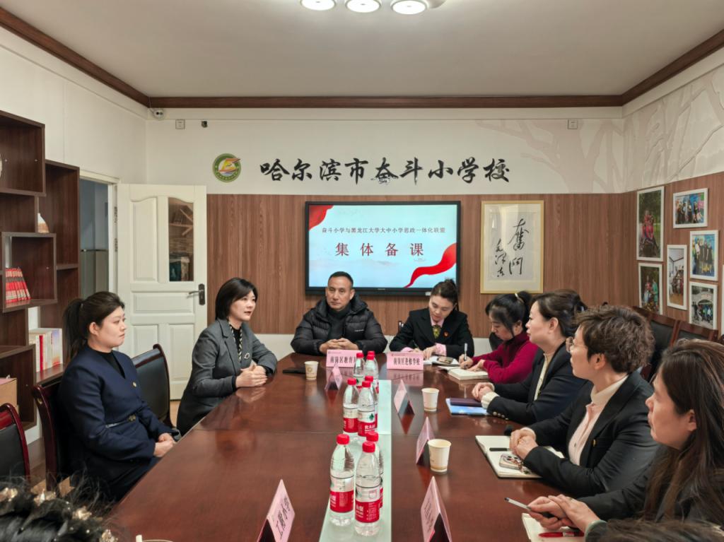 为扎实推进大中小学思政课一体化建设落地见效,落实学校服务龙江办学战略,以实际行动贯通全学段育人脉络,12月16日,中国·yl23411(永利)集团官网与奋斗教育集团联合开展大中小学思政一体化教育联盟活动,公司党委书记张丹带领思政课教师团队赴哈尔滨市奋斗小学共同参加。南岗区教育局德育办主任赵喜忠、视导员朱睿、区教师进修学校思政一体化负责人那布其、奋斗教育集团及联盟校负责人以及大兴安岭地区教联体、七台河共建学校的师生代表通过线上线下结合的方式参与活动。