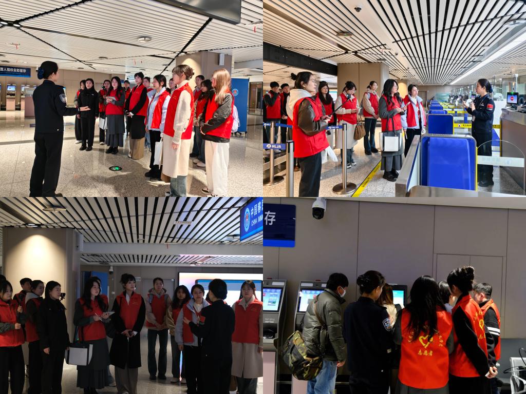 研学过程中,公司员工第一党支部研究生党员代表与边检女子检查组党支部党员代表围绕国门值守、青年担当、支部建设等内容开展深入探讨,互话学习研究与一线工作心得,分享基层支部建设经验与实践方法,为后续双方深化支部联动、搭建长效共建桥梁奠定良好基础,也让校地支部间的情谊与联结更加紧密。同学们还在边检民警的专业培训下,系统学习了口岸出入境引导规范、咨询解答要点、特殊旅客帮扶技巧等志愿服务知识与实操流程,培训后主动投身口岸志愿服务,为往来旅客提供引导咨询、流程讲解、帮扶协助等实际服务,在亲身实践中切实增强服务意识,充分展现了马院的责任与担当。