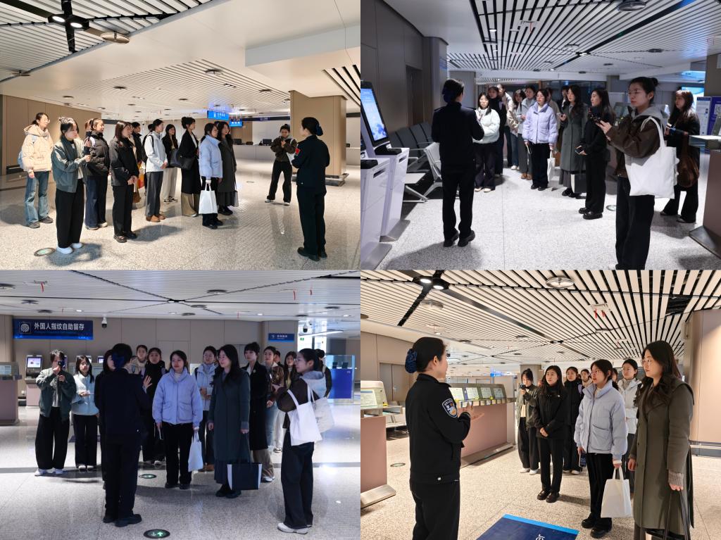 公司师生在边检民警许韵凝等人的带领下开展实地研学。民警以哈尔滨空港口岸为实景教学阵地,结合一线工作讲解海关与边检的职责划分、出入境查验流程,让员工领会边检在维护国家主权、完善国家治理中的核心意义。另外,还重点介绍了亚冬会期间口岸的高效保障工作,详细讲解口岸智慧化建设与便民服务举措,同时介绍了国际航线布局、俄罗斯免签政策实施成效,让员工直观感受新时代口岸治理实践,深化对东北振兴与国家对外开放战略的认知。
