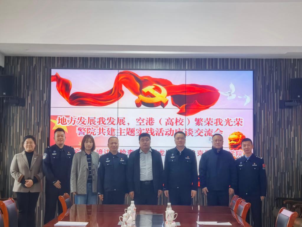 双方相关领导、师生代表围绕警院共建共育开展“地方发展我发展,空港(高校)繁荣我光荣”座谈交流会。双方聚焦校地协同发展、思政教育融合、人才联合培养等核心议题深入探讨,立足学院理论教研优势与边检机关实战治理优势,就落实警院共建合作协议、开展全方位深层次合作达成高度共识,为推动马克思主义理论研究与口岸治理实践双向赋能筑牢根基。