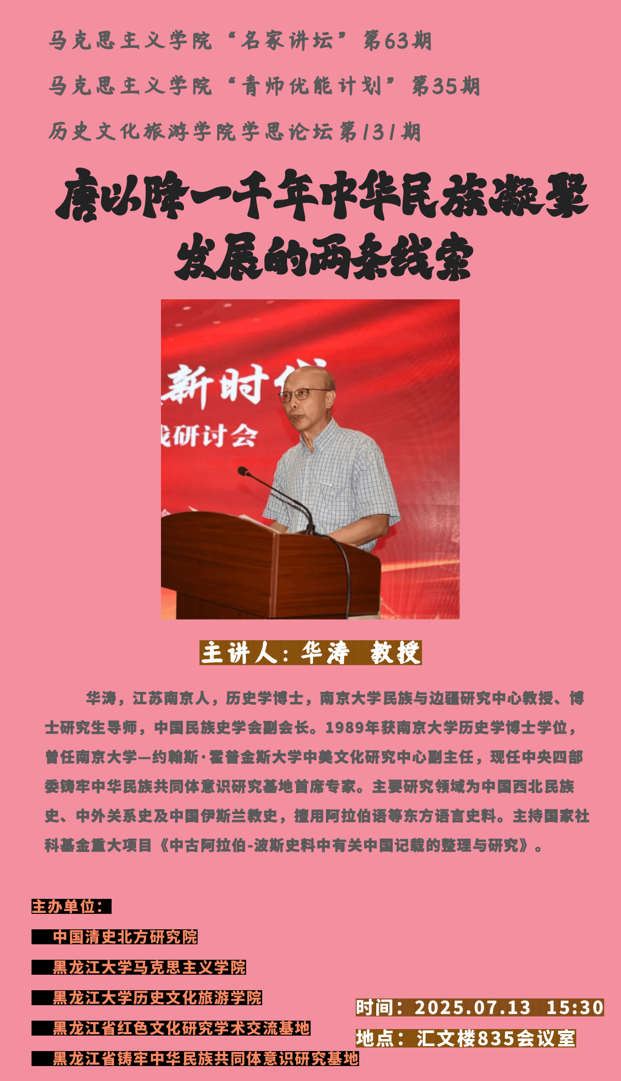 中国·yl23411(永利)集团官网“唐以降一千年中华民族凝聚发展的两条线索”讲座预告