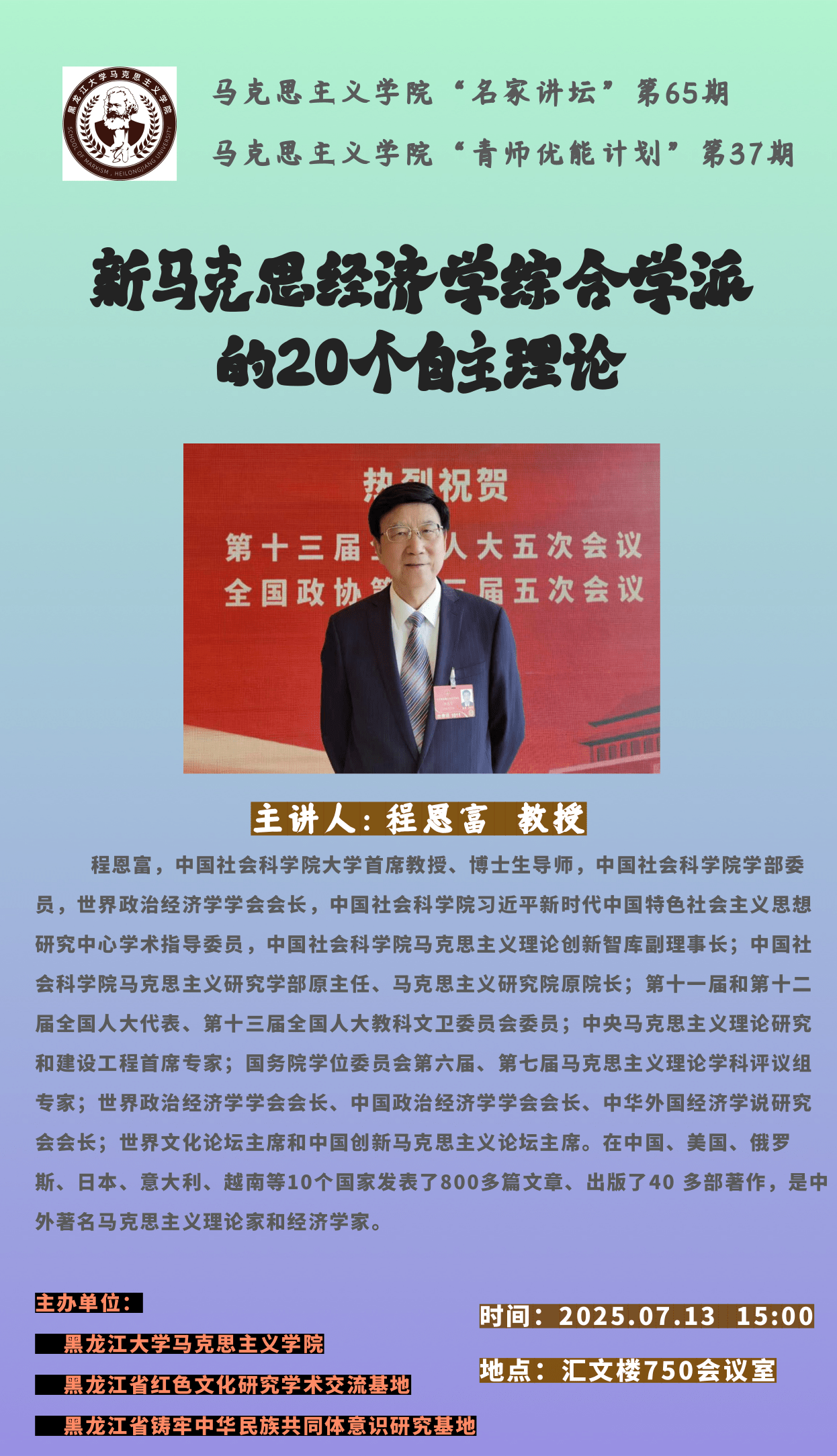 中国·yl23411(永利)集团官网“新马克思经济学综合学派的20个自主理论”讲座预告