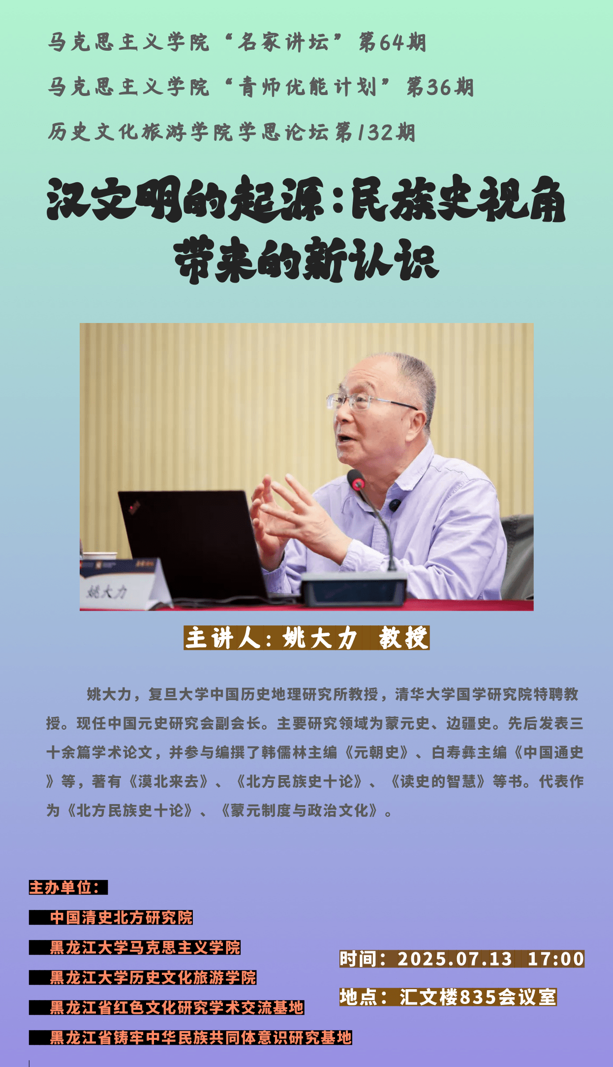中国·yl23411(永利)集团官网“汉文明的起源:民族史视角带来的新认识”讲座预告