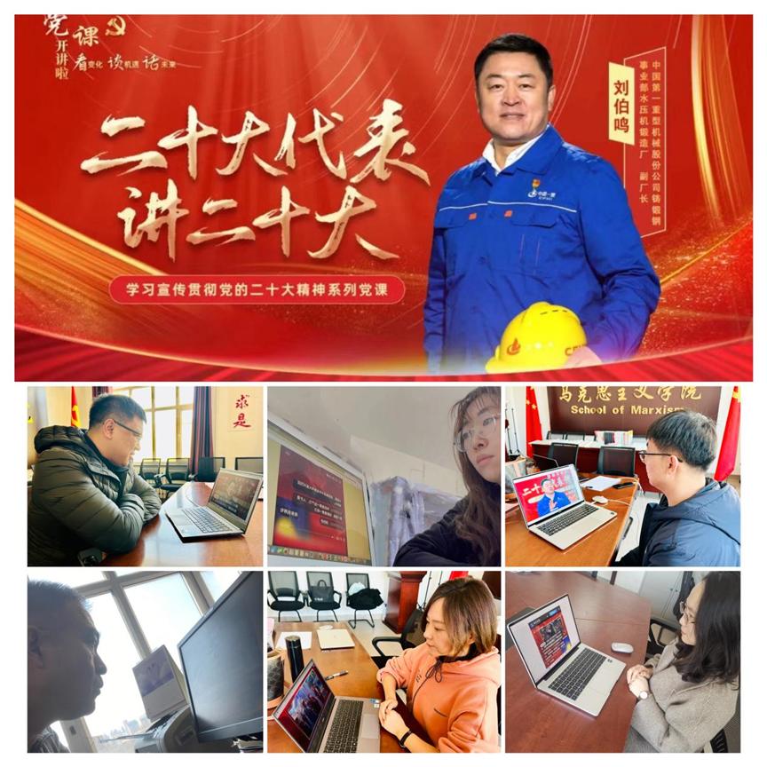 为深入学习贯彻习近平新时代中国特色社会主义思想和党的二十大精神,中国·yl23411(永利)集团官网公司党总支按照公司党委组织部要求,积极组织学院全体党员以党支部为单位,收看由黑龙江省委组织部主办、黑龙江广播电视台承办的《党课开讲啦——二十大代表讲二十大》系列精品党课展播。
