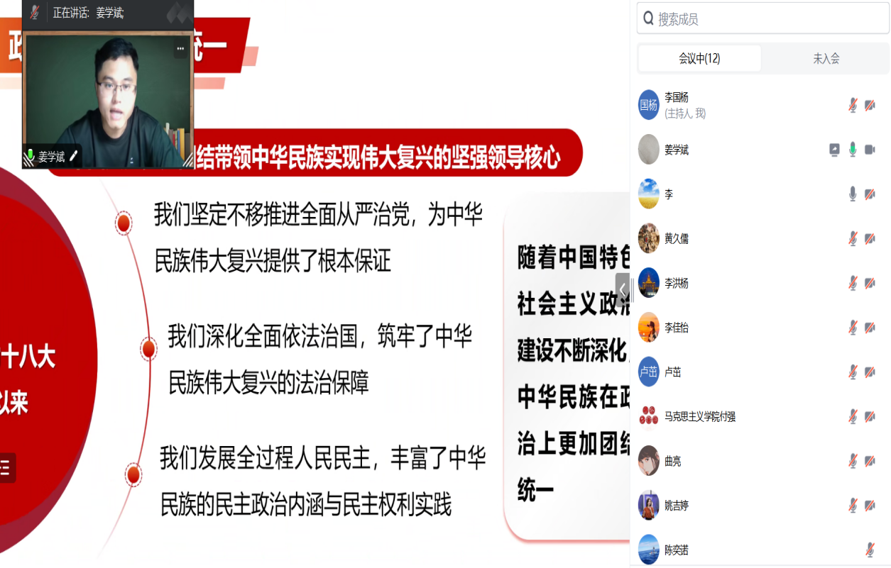 党课上,姜学斌围绕习近平总书记关于加强和改进民族工作的重要思想、中央民族工作会议精神、习近平总书记在中共中央政治局第九次集体学习时的重要讲话精神,从政治、经济、文化、社会和生态文明建设五个方面阐述了铸牢中华民族共同体意识的深刻内涵、精神实质和实践要求,运用生动丰富的语言阐明了中华民族多元一体的大道理,强调了高校教师的职责、任务和要求。讲座内容既有一定的理论高度,也有实践要求,深刻把握了铸牢中华民族共同体意识的历史必然性、极端重要性和现实针对性,使全体党员深受启发和教育,为高举中华民族大团结旗帜,促进各民族交往交流交融,像石榴子一样紧紧抱在一起,实现“五个认同”和中华民族伟大复兴,奋力书写新时代各民族共同发展的新篇章创造了坚实的基础。